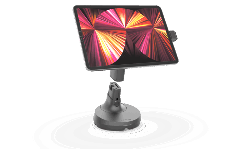 Nuestras bases y soportes de seguridad especiales para tablets, equipos, y accesorios electrónicos los exhiben, protegen de robos, y cargan para venta, muestra, o POS.